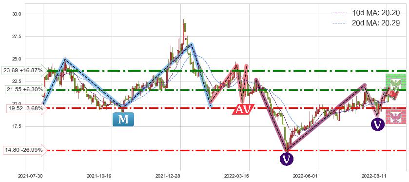 ➢ 2022-07-20到达第❶价格目标位置21.25