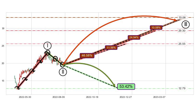 ♘ 支撑价格位14.42,可信任强度94.59%,距离最后交易2022-08-12形成的收盘价格20.00相差 -27.90%