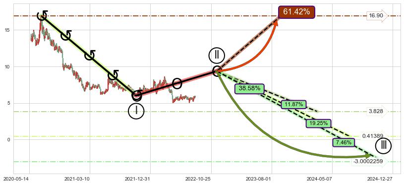 ➣ 大趋势循环浪继续向下概率38.58%