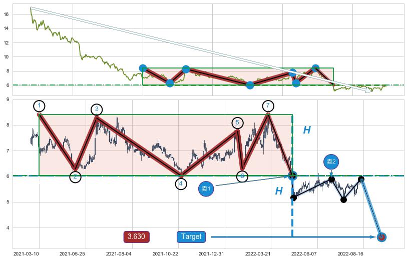 ➢ 【已确认突破】最后价格:5.85与最小【整理】第一目标价格→(2022-09-12: 3.630 )相较: 下跌空间【较大】