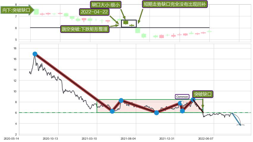 ➢ 【多方力量耗尽】已在2022-04-25突破矩形提供的【支撑】颈线 6.02 →箱形震荡盘整结束