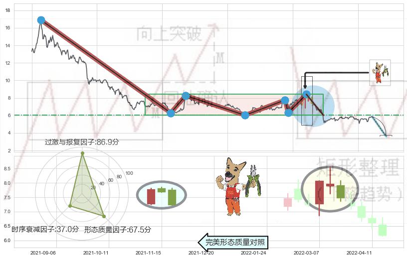 ➢ 【卖1】: 激进型 卖点→(2022-04-25: 6.02 )形成突破下跌矩形整理【整理】形态