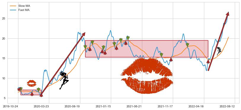 2022-05-11至2022-08-12 慢线与快线呈多头排列, 慢线与快线接触少,无缠绕