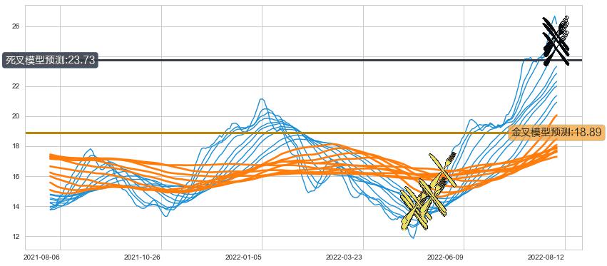 ➢ 10小时均线于(2022-08-11: 25.45)形成【死叉】基于【死叉历史模型】预测死叉后最低波谷价格: 24.63, 死叉后最低价格23.56,已经下跌超出预测最低波谷价格, 预期反弹