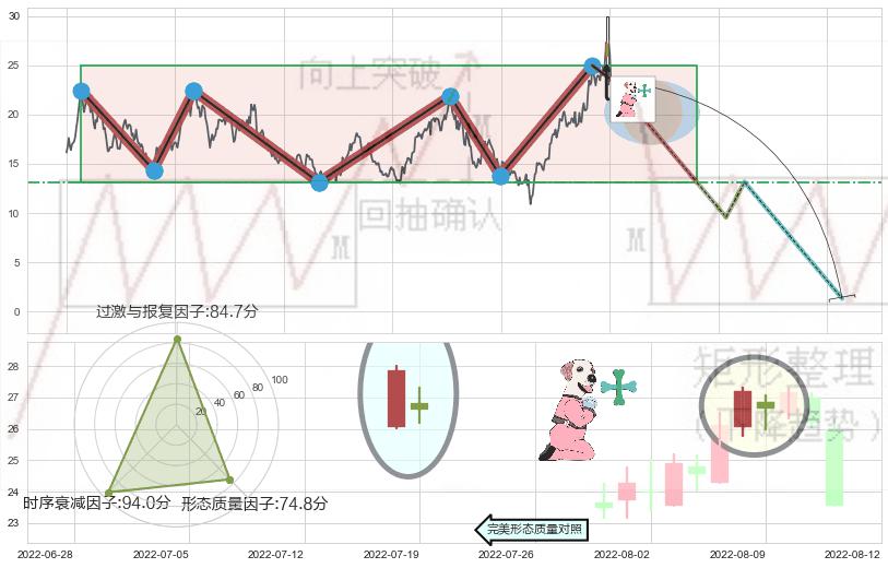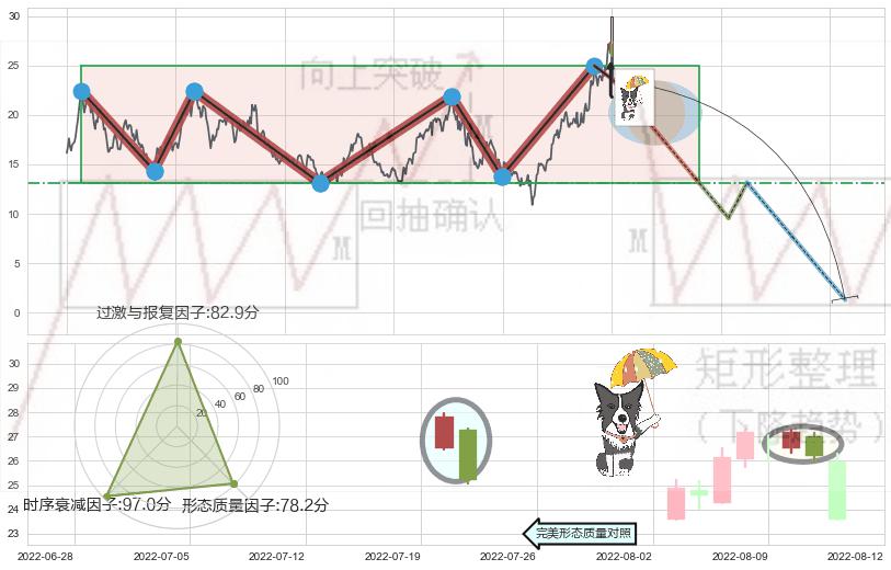 ➢ 下跌孕十字星 🔜 下跌矩形整理临近支撑猜想转换阻力下跌 综合量化分数:39.68 【偏空】