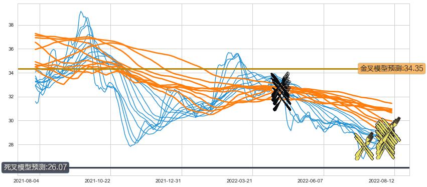 ➣ 120小时均线于(2022-04-20: 31.80)形成【死叉】基于【死叉历史模型】预测死叉后最低波谷价格: 25.94, 死叉后最低价格26.42,虽然还未下跌超出预测最低波谷价格, 但横盘时间过长, 预期反弹