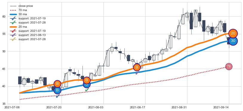 ➣ 21小时均线于(2022-07-15: 59.53)形成【死叉】基于【死叉历史模型】预测死叉后最低波谷价格: 56.01, 死叉后最低价格49.69,已经下跌超出预测最低波谷价格, 预期反弹