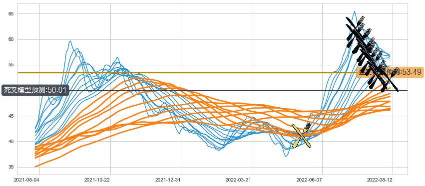 ➣ 60小时均线于(2022-08-01: 52.52)形成【死叉】基于【死叉历史模型】预测死叉后最低波谷价格: 45.90, 死叉后最低价格49.69,尚未达到预测最低波谷价格, 预期继续下跌