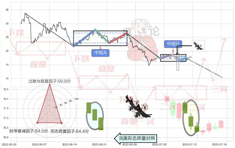 ➣ 【中枢B】:2022-05-27-2022-07-29,中枢由4笔构成,共45交易日, ZG=17.47, ZD=17.20