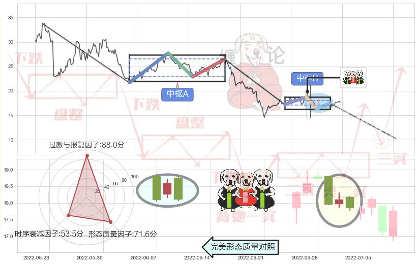 ➢ 🕰 价格走势在2022-06-29至2022-07-01期间形成两黑夹一红,残存影响值:-3.52