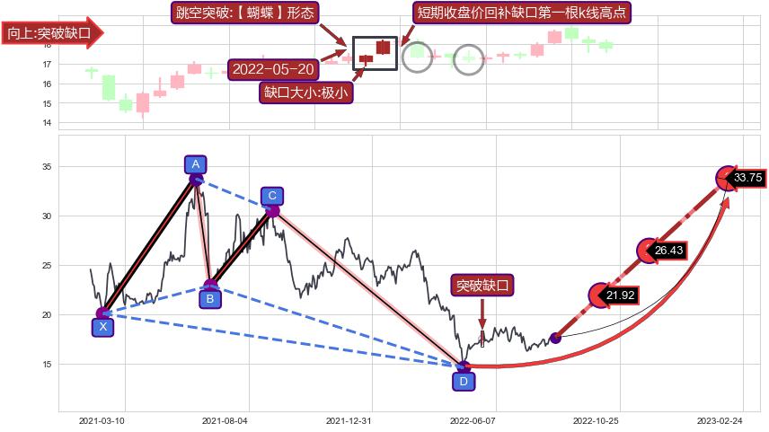 ➢ 已完成【蝴蝶】形态起点X: 2021-02-05, 终点D: 2022-04-26, 共293交易日