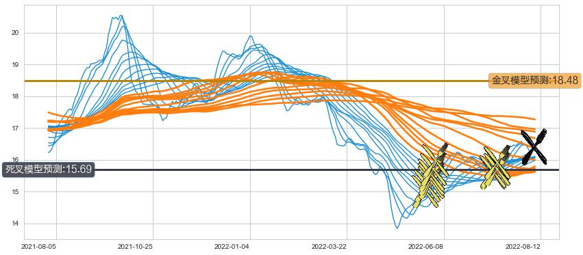➢ 10小时均线于(2022-08-11: 16.39)形成【死叉】基于【死叉历史模型】预测死叉后最低波谷价格: 15.80, 死叉后最低价格16.32,尚未达到预测最低波谷价格, 预期继续下跌