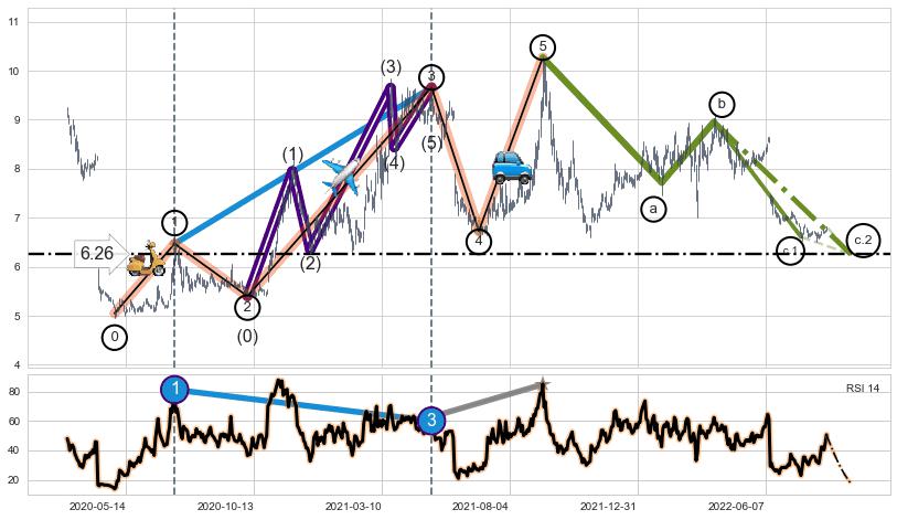 ➣ c.1: 当前c浪回调位置(2022-07-15, 6.61),仍然有回调空间