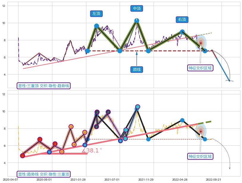 ➣ 【已确认突破】三重顶 起点:2021-01-29,突破点:2022-07-14,形态共351交易日