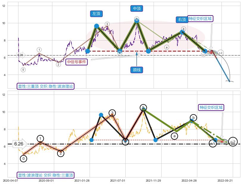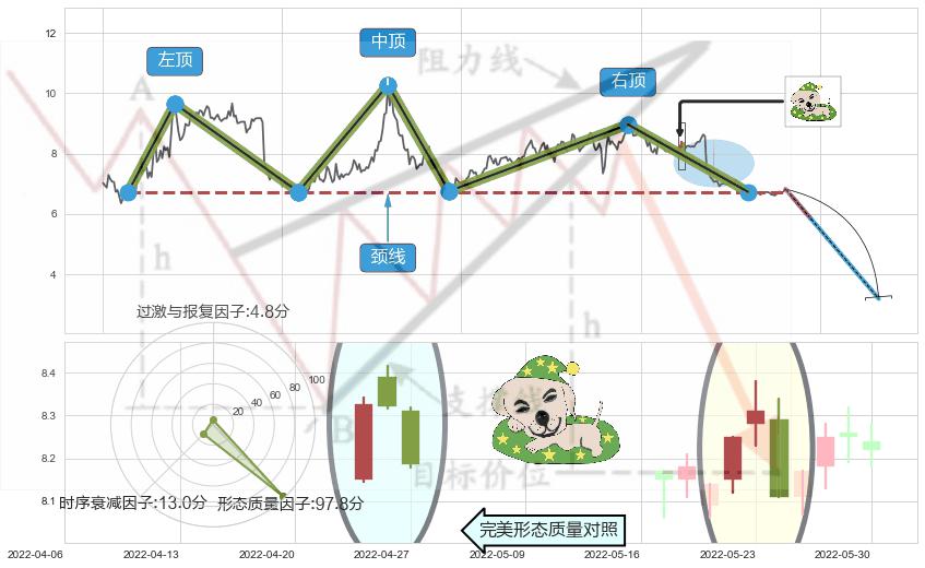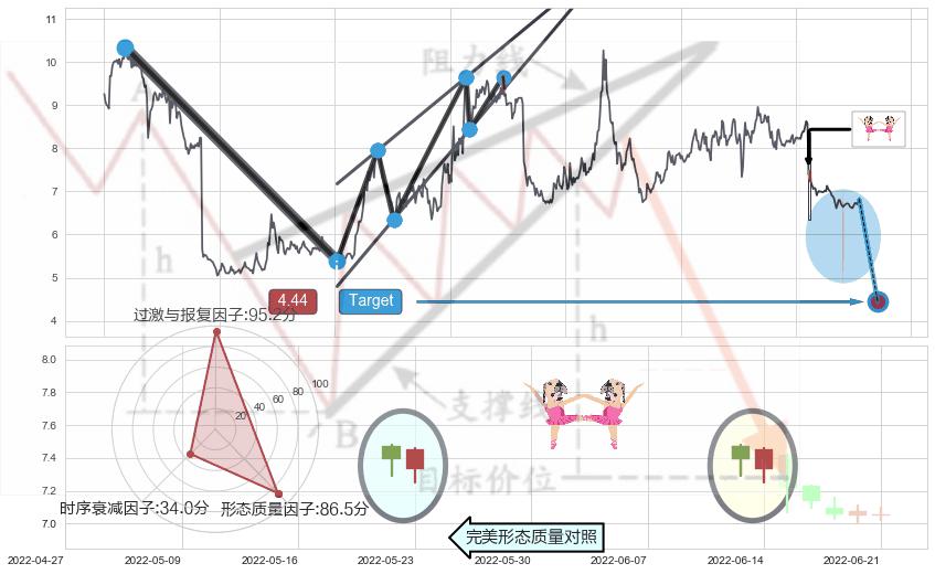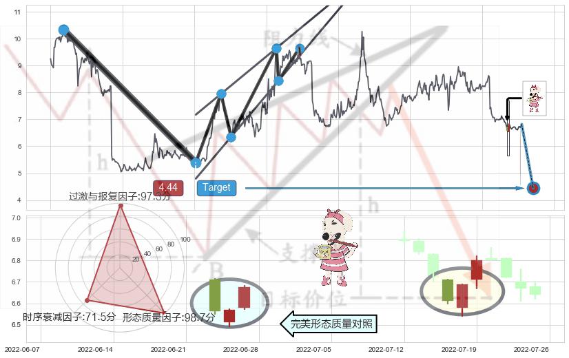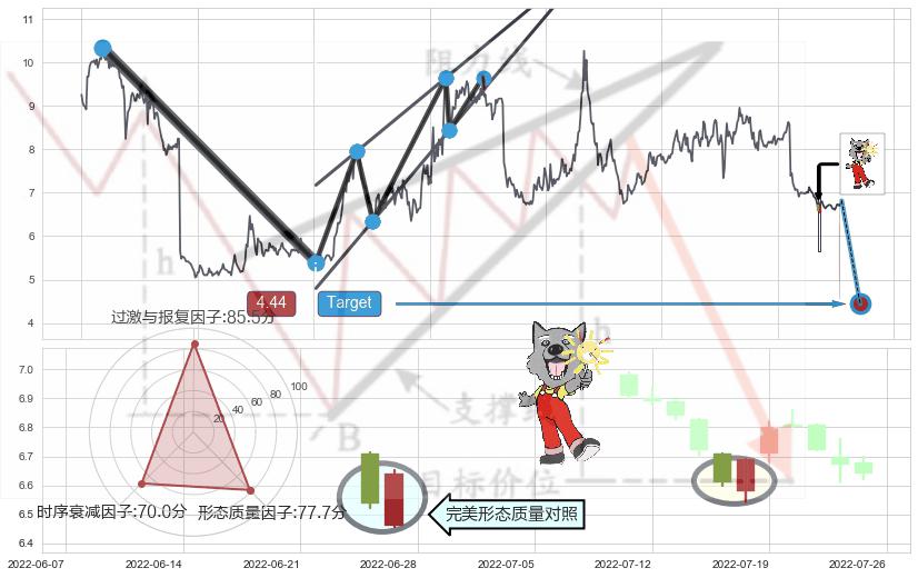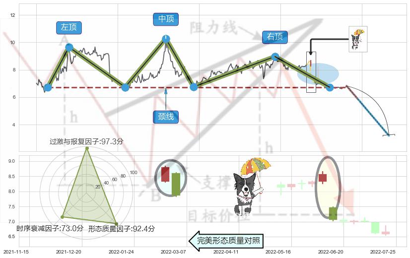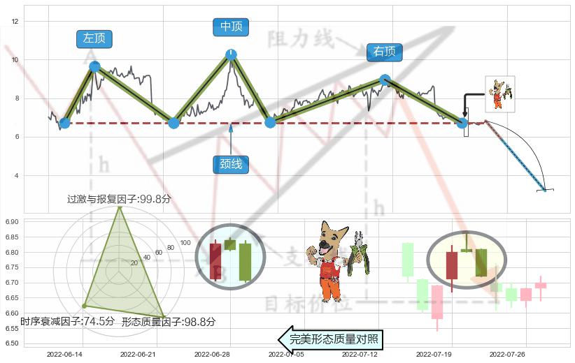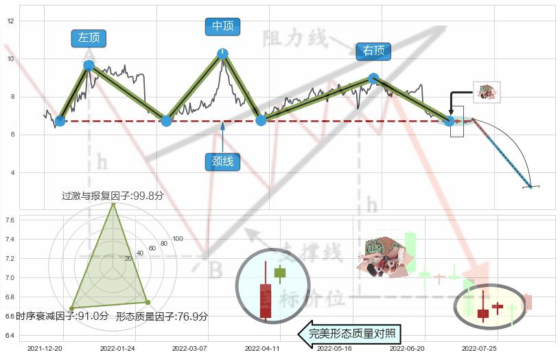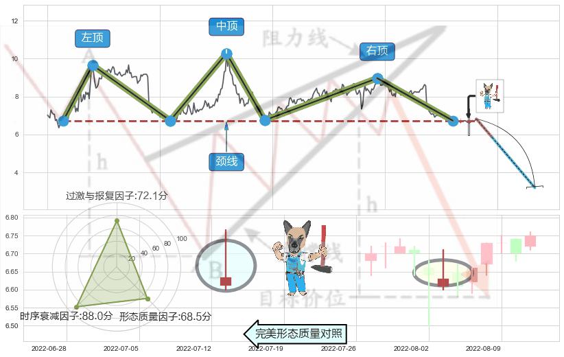 ➢ 【卖1】: 激进型 卖点→(2022-07-14: 6.73 )形成突破三重顶【反转】形态