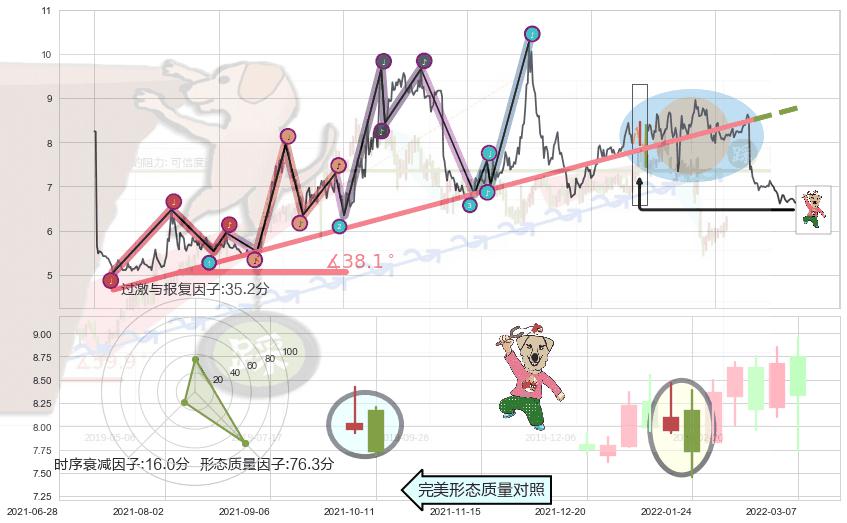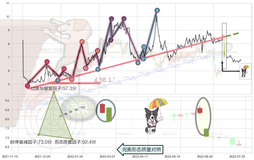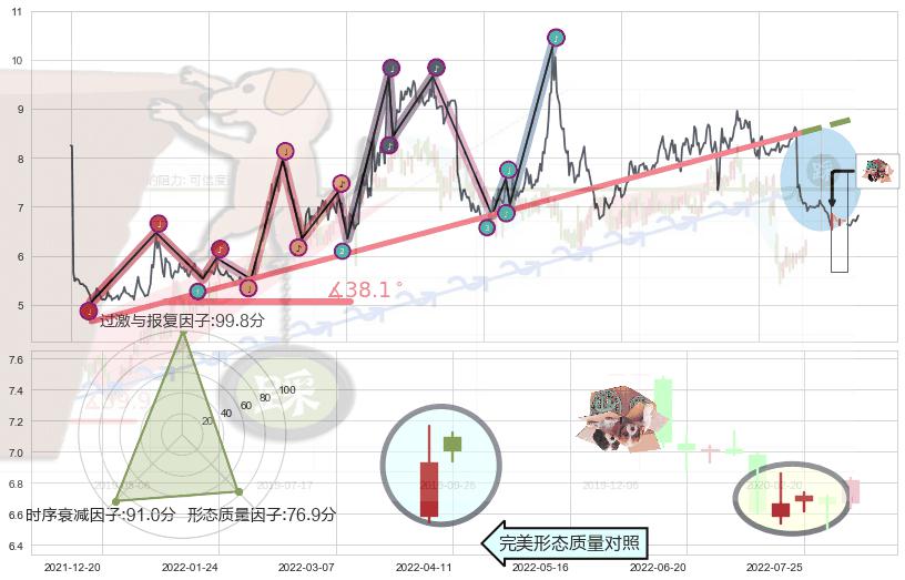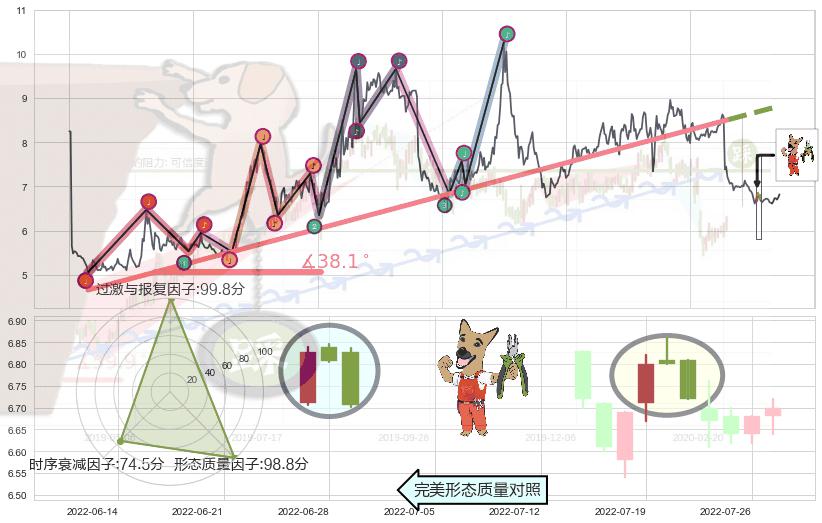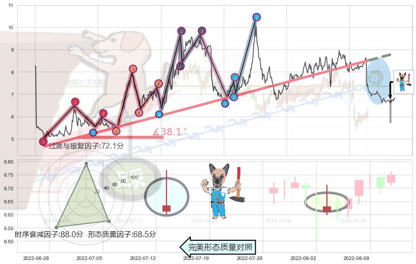 ➢ 2020-04-28-2022-06-16上升趋势存在反转[风险],其原上升趋势的支撑位(8.82)已破位[强阻力信号],原上升趋势角度: 38.1˚