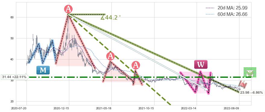 ♘ 阻力价格位31.44,可信任强度78.17%,距离最后交易2022-08-12形成的收盘价格25.75相差 +22.11%