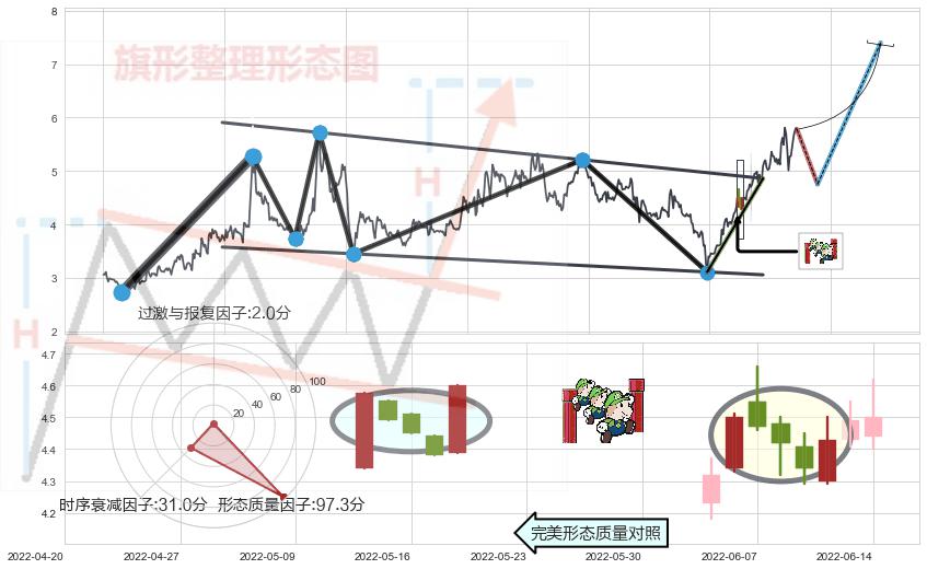 ➢ 【买1】: 激进型 买点 →(2022-07-05: 4.86 )形成突破降⚑旗形【整理】形态