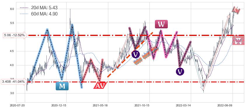 ➢ 2022-07-14到达第❸价格目标位置5.36