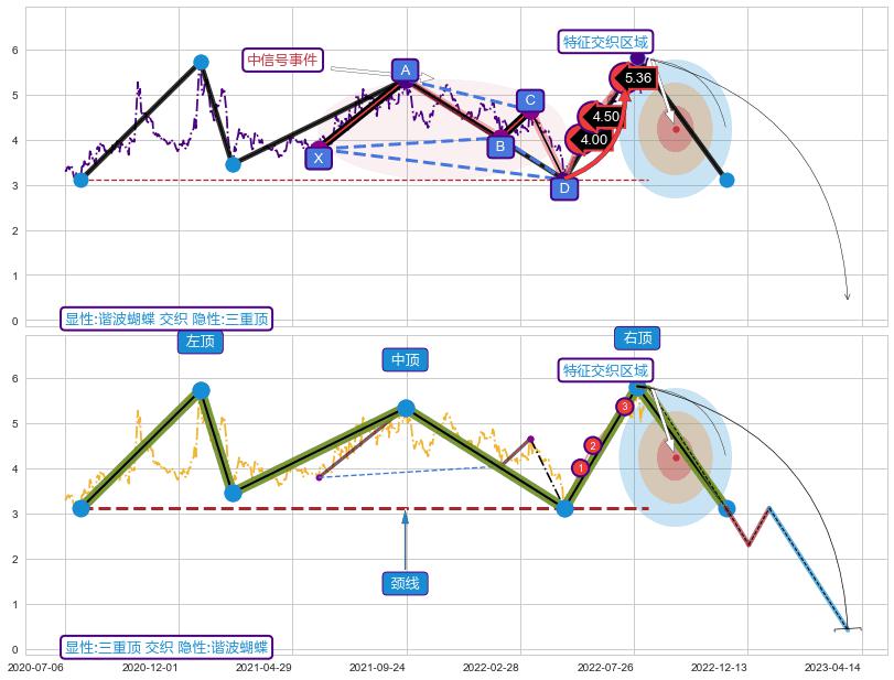 ➢ 谐波蝴蝶属【中级别信号事件】三重顶属【长级别信号事件】中长周期组合信号事件,中长事件长度比43.40%