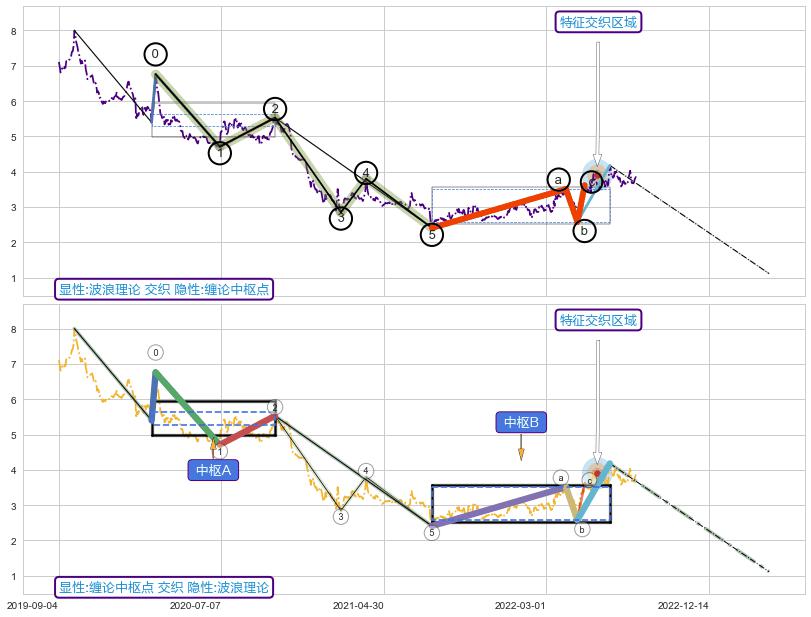 ➢ 【未完成】缠论 起点:2019-10-09, 完成第1中枢A,完成第2中枢B,到达2022-08-12