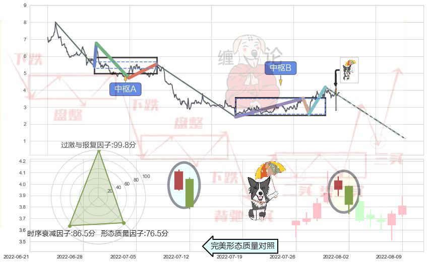 ➣ 射击之星形态 + 缠论中枢点破位中枢B支撑下拉信号叠加后【目标达成率】中等,【看空】信号叠加【存续影响中等】