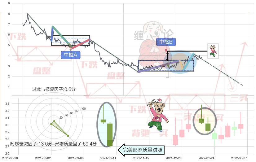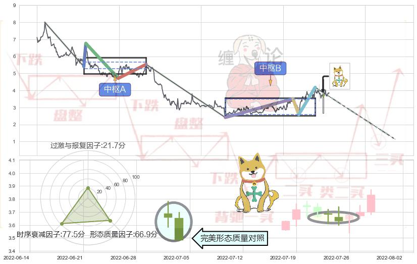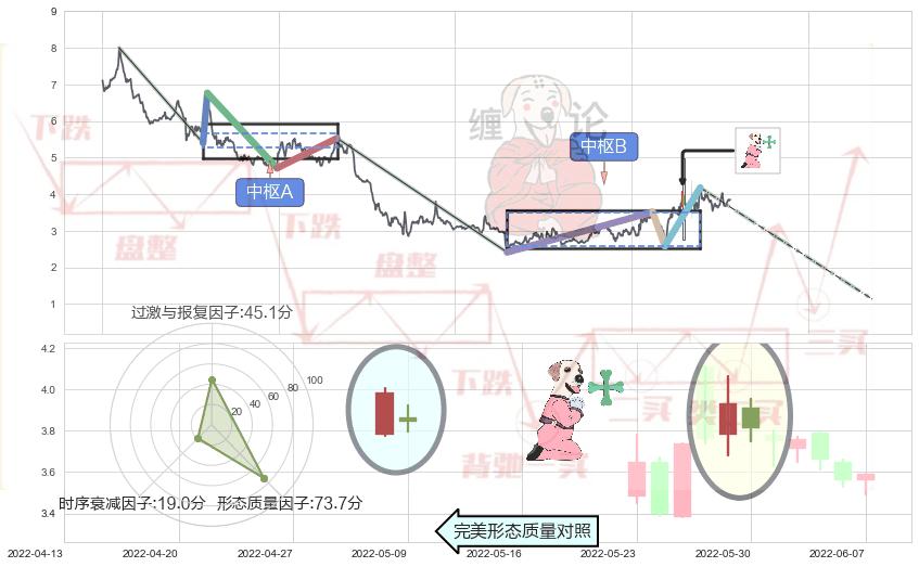 ➢ 射击之星形态 🔜 缠论中枢点破位中枢B支撑下拉 综合量化分数:48.09 【中性】