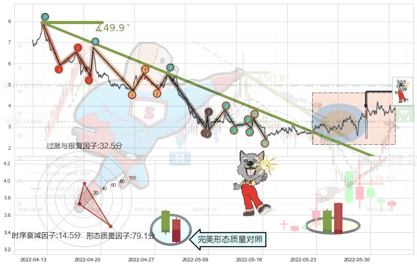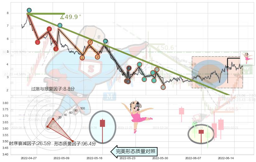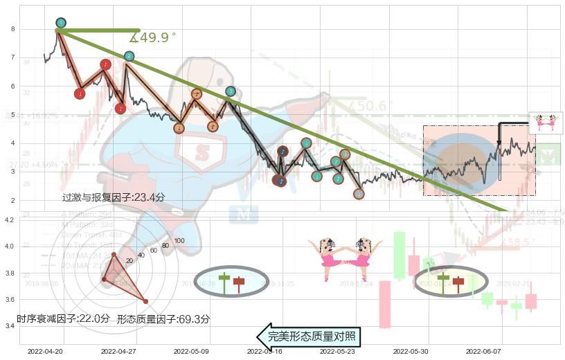 ➢ 🕰 价格走势在2022-05-23至2022-06-20期间形成上升三部曲(升势三鸦),残存影响值:3.98