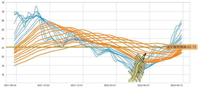 ➢ 70小时均线于(2022-05-16: 18.84)形成【金叉】基于【金叉历史模型】预测金叉后最高波峰价格: 23.78, 金叉后最高价格28.53,已经上涨超出预测最高波峰价格, 预期回调