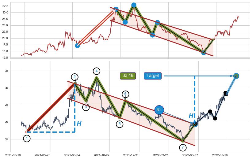 ➣ 最小中继整理涨幅→𝐇: 14.13 (𝐇旗杆的长度:旗杆起点→顶点)