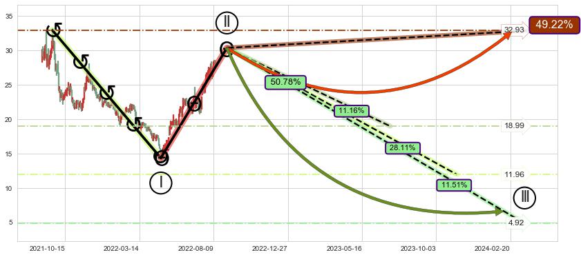 ➣ c.1: 当前c浪回调位置(2022-08-10, 28.53),仍然有回调空间