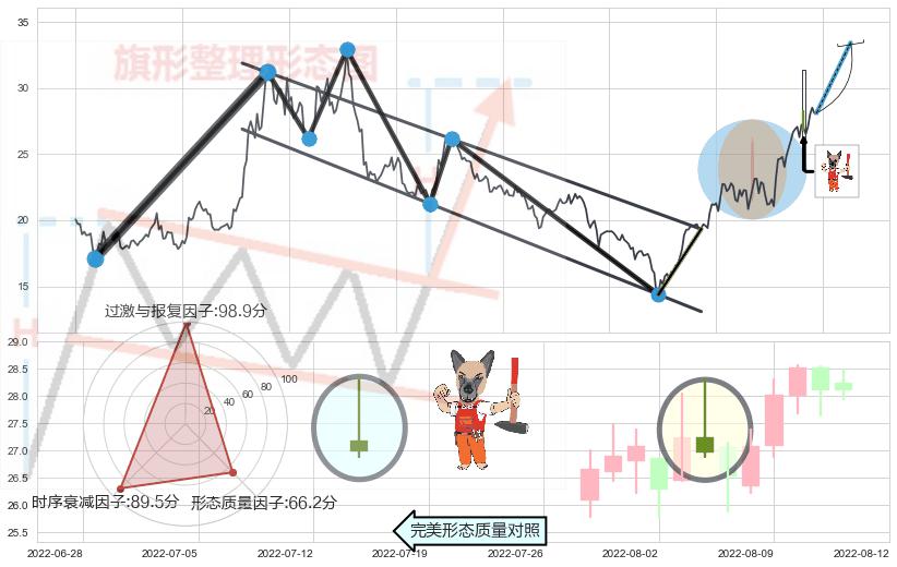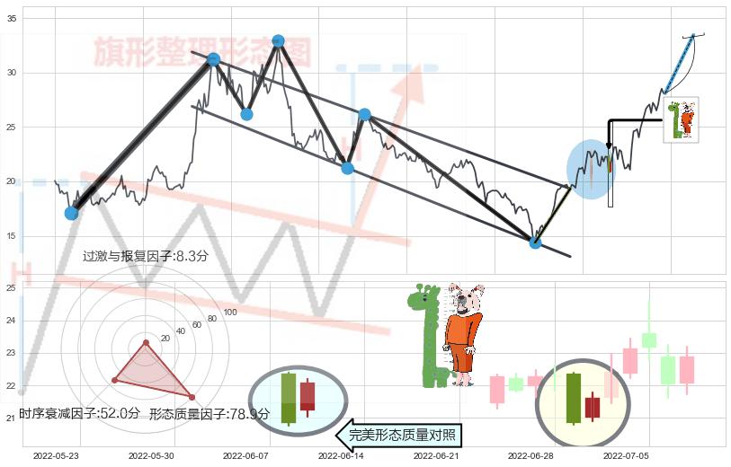 ➢ 上涨镊子线(U形磁铁) 🔜 降旗形阻力突破转换支撑上涨 综合量化分数:52.73 【中性】