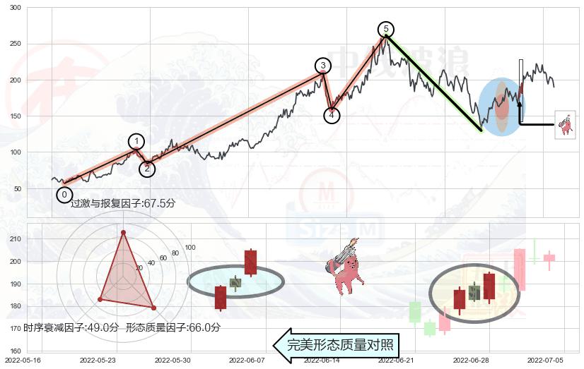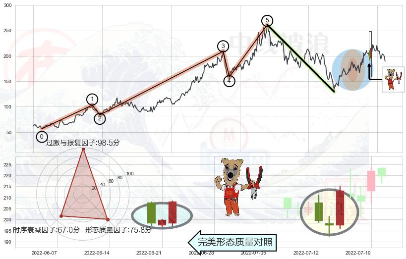 ➢ 看跌(高位倒锤头)流星线 + 波浪理论击穿破位C点继续下跌信号叠加后【反向回撤率】中等,【看空】信号叠加【存续影响中等】