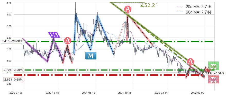 ➣ 【仅预测突破】最后价格:2.710与预测突破价格:2.830→【空间中等】后续最小【反转】第一目标价格→(2022-09-19: 3.010 )