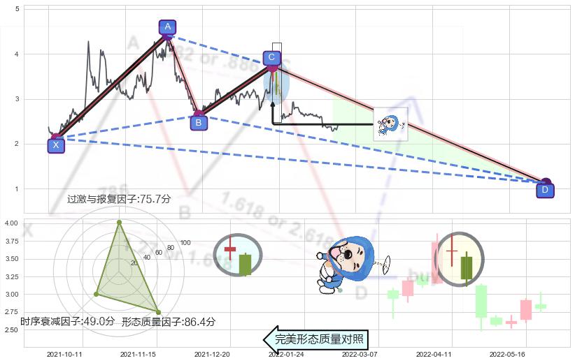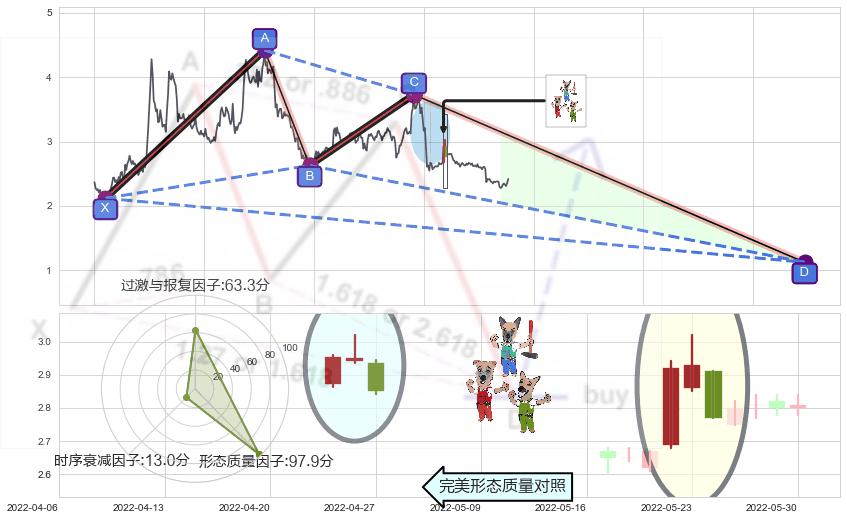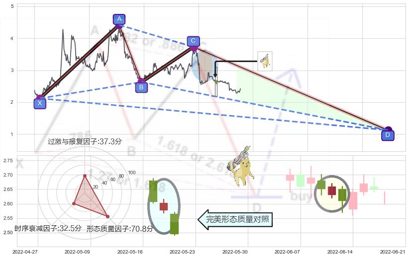 ➣ 未完成【蝴蝶】形态起点X: 2021-02-04, 已到达C点: 2022-04-08, 预测最终D点: 2023-08-25, 共631交易日