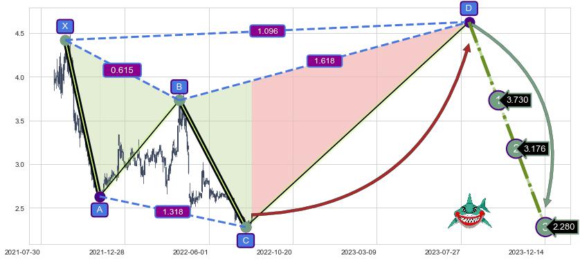 ➣ 未完成【鲨鱼】形态起点X: 2021-09-09, 已到达C点: 2022-08-03, 预测最终D点: 2023-08-10, 共482交易日