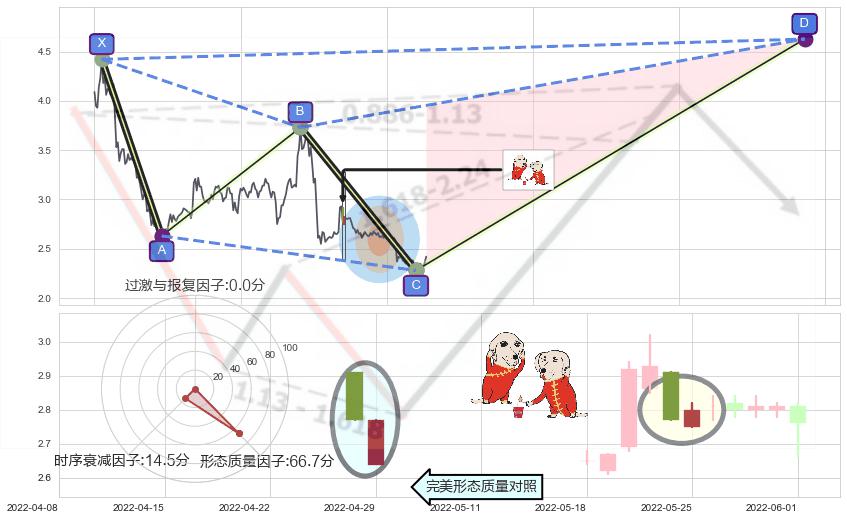 ➢ 早晨之星(黎明之星) 🔜 谐波鲨鱼下沉击穿c上涨拐点 综合量化分数:50.67 【中性】