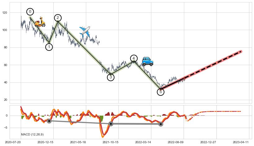 ➢ 【MACD】背离基于AI预测最终点位置,所以可注意观察前期预测走势是否相符合