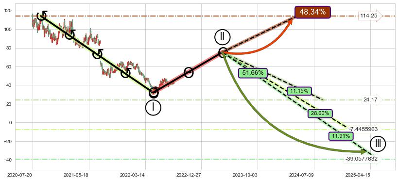 ➢ 循环浪继续向下【最低】位置(2025-05-21, -39.0577632),匹配聚类样本比例23.06%, 可能性概率11.91%