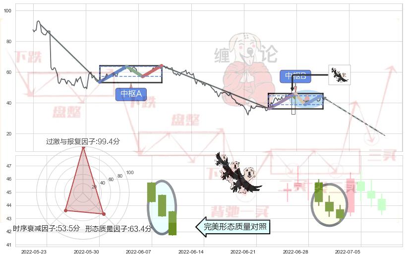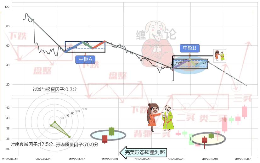 ➢ 下跌螺旋桨 🔜 缠论中枢点破位中枢B支撑下拉 综合量化分数:49.46 【中性】