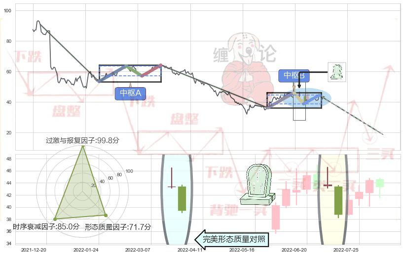 ➢ 墓碑十字线(墓碑线) 🔜 缠论中枢点破位中枢B支撑下拉 综合量化分数:49.44 【中性】