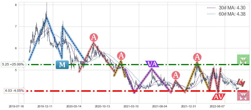 ♘ 支撑价格位4.03,可信任强度89.04%,距离最后交易2022-08-12形成的收盘价格4.20相差 -4.05%