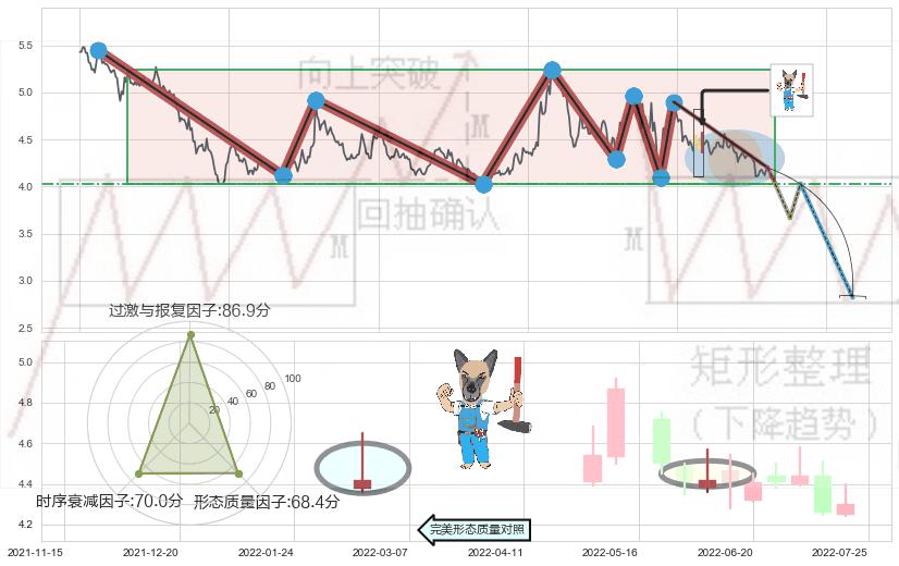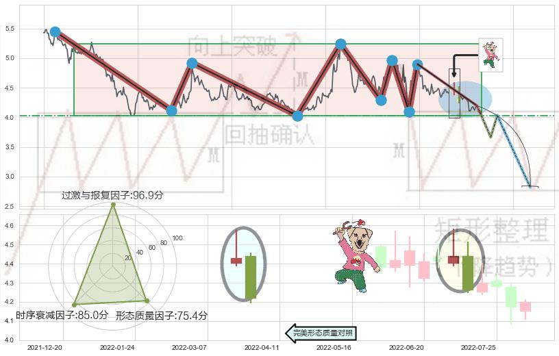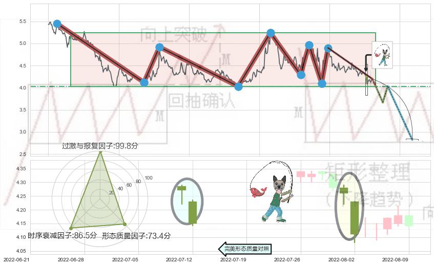 ➢ AI智能: 预测【多方力量耗尽】,矩形中继整理向下突破,预测将在2022-08-19突破矩形提供的颈线