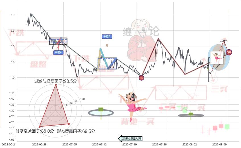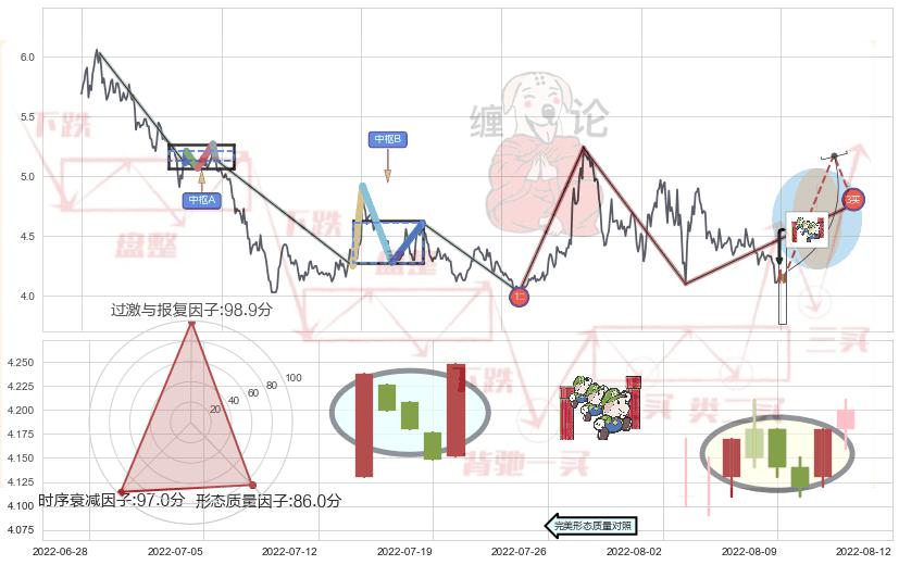 ➢ 🕰 价格走势在2022-08-05至2022-08-11期间形成上升三部曲(升势三鸦),残存影响值:4.90