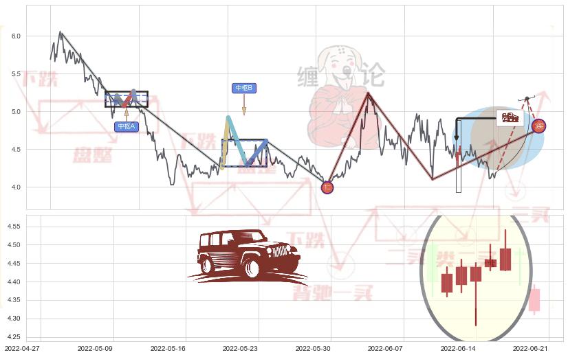 ➣ 【中枢B】:2021-05-07-2021-07-19,中枢由4笔构成,共51交易日, ZG=4.61, ZD=4.28