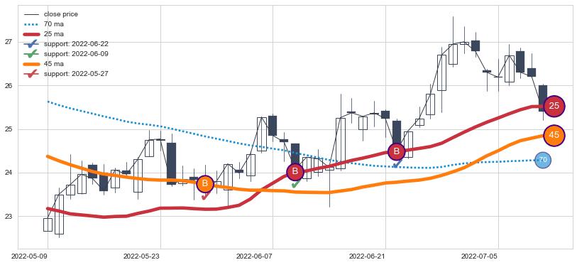 ➣ 80小时均线于(2022-06-22: 24.55)形成【金叉】基于【金叉历史模型】预测金叉后最高波峰价格: 35.15, 金叉后最高价格29.55,尚未达到预测最高波峰价格, 预期继续上涨