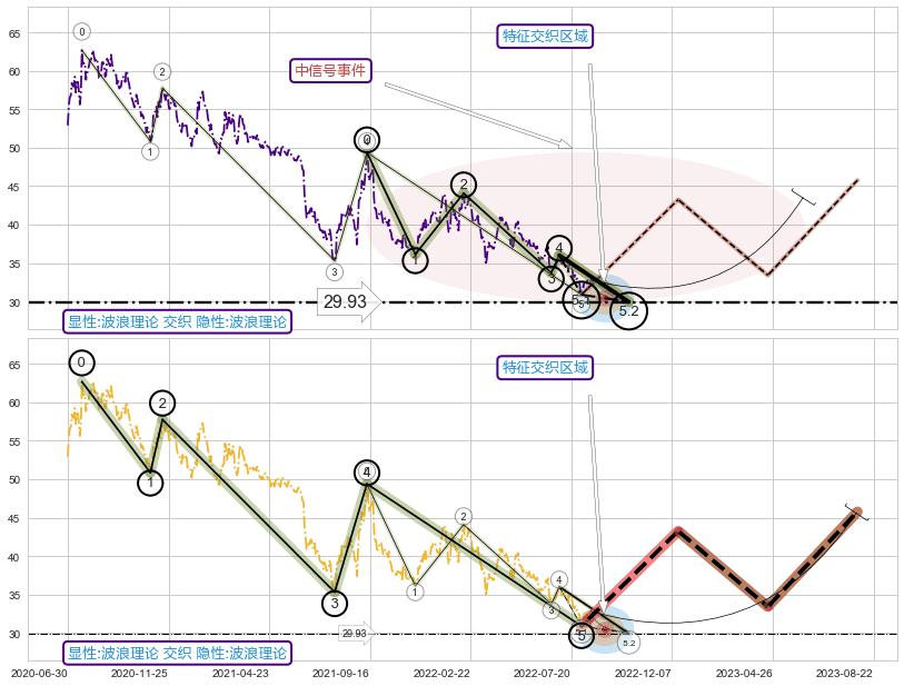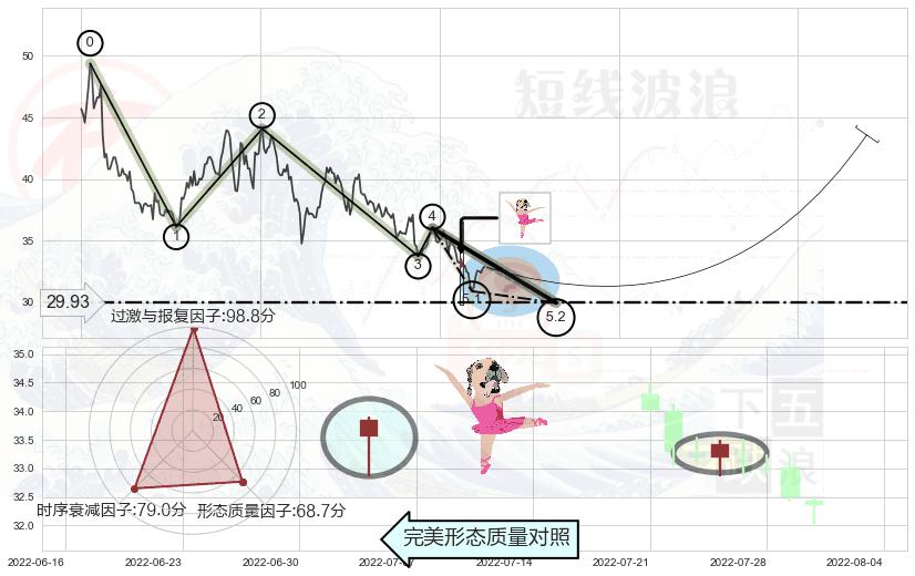 ➣ 5.1: 预测当前第5浪位置(2022-08-03, 30.88),仍然有下跌空间