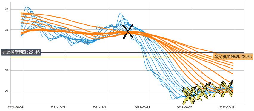 ➢ 180小时均线于(2022-02-10: 34.42)形成【死叉】基于【死叉历史模型】预测死叉后最低波谷价格: 29.46, 死叉后最低价格16.94,已经下跌超出预测最低波谷价格, 预期反弹
