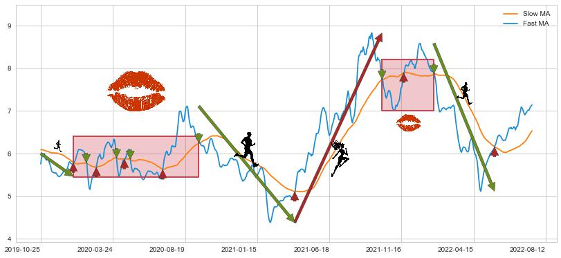 2021-10-08至2022-01-19 慢线与快线多次接触,存在上下穿越,有缠绕