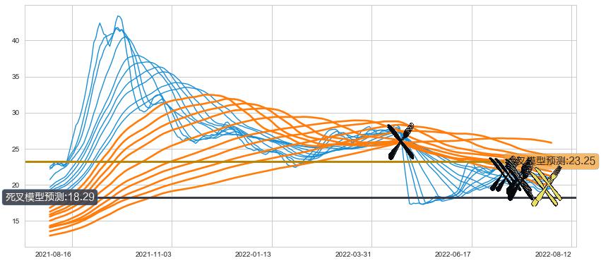 ➣ 100小时均线于(2022-04-22: 26.09)形成【死叉】基于【死叉历史模型】预测死叉后最低波谷价格: 24.09, 死叉后最低价格16.73,已经下跌超出预测最低波谷价格, 预期反弹